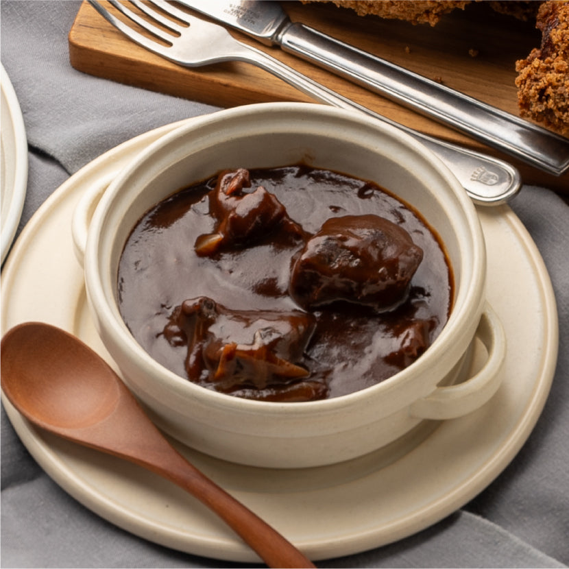 贅沢な国産の牛スネ肉を赤ワインで長時間煮込み、トロッとした食感に。そして旨味とコクのある深い味わいに仕上げました。寒い季節にぴったりな、ちょっぴり大人のビーフシチューをお楽しみください。