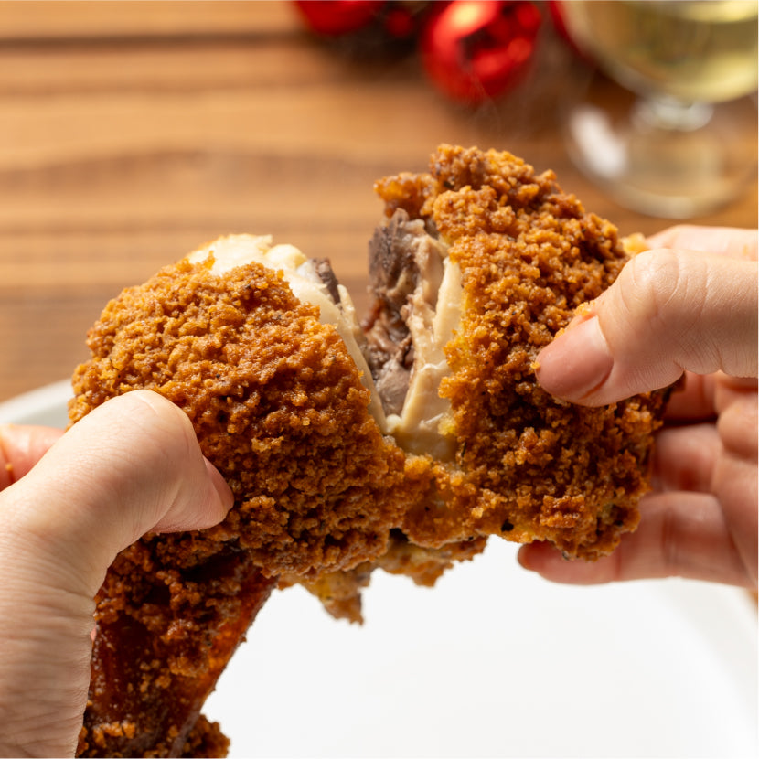 オリジナルのザクザクな衣をまとったチキンと牛すね肉がごろっと入った赤ワインで煮込んだ大人なビーフシチューで贅沢なクリスマスのひとときを。