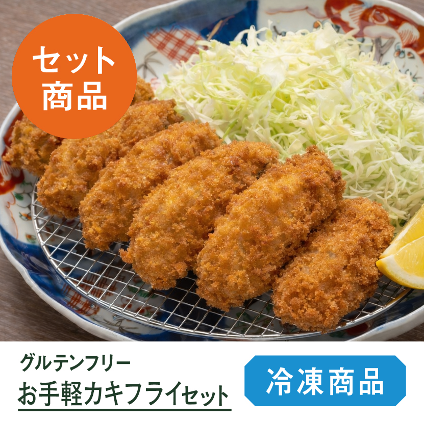 電子レンジとオーブントースターで温めるだけでグルテンフリーのカキフライをお手軽に楽しめるセットです。